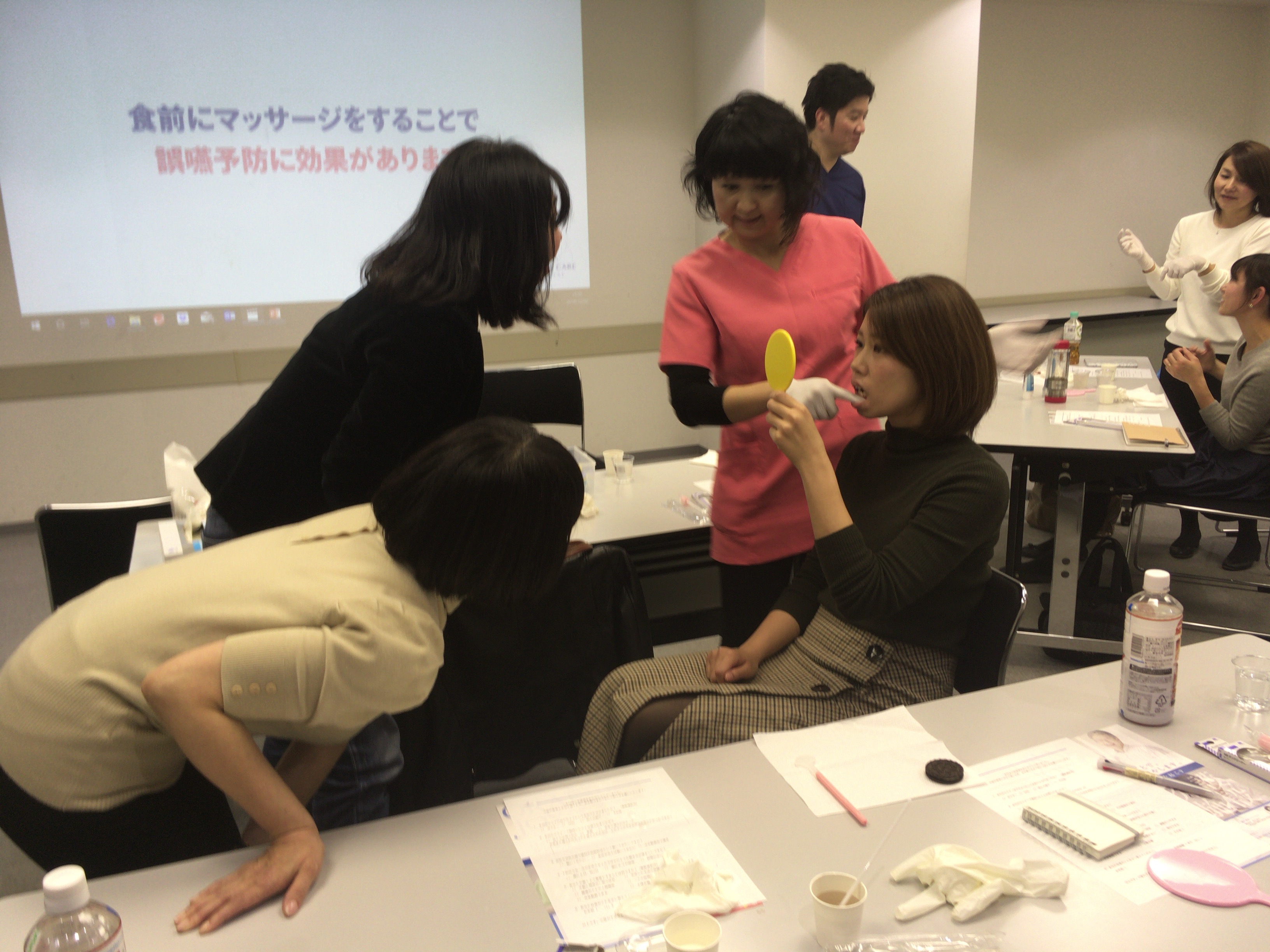 そして、実際の口腔ケアをどのようにやっているかを体験頂いた方が早いため、急遽、口腔ケアの実習も行いました。