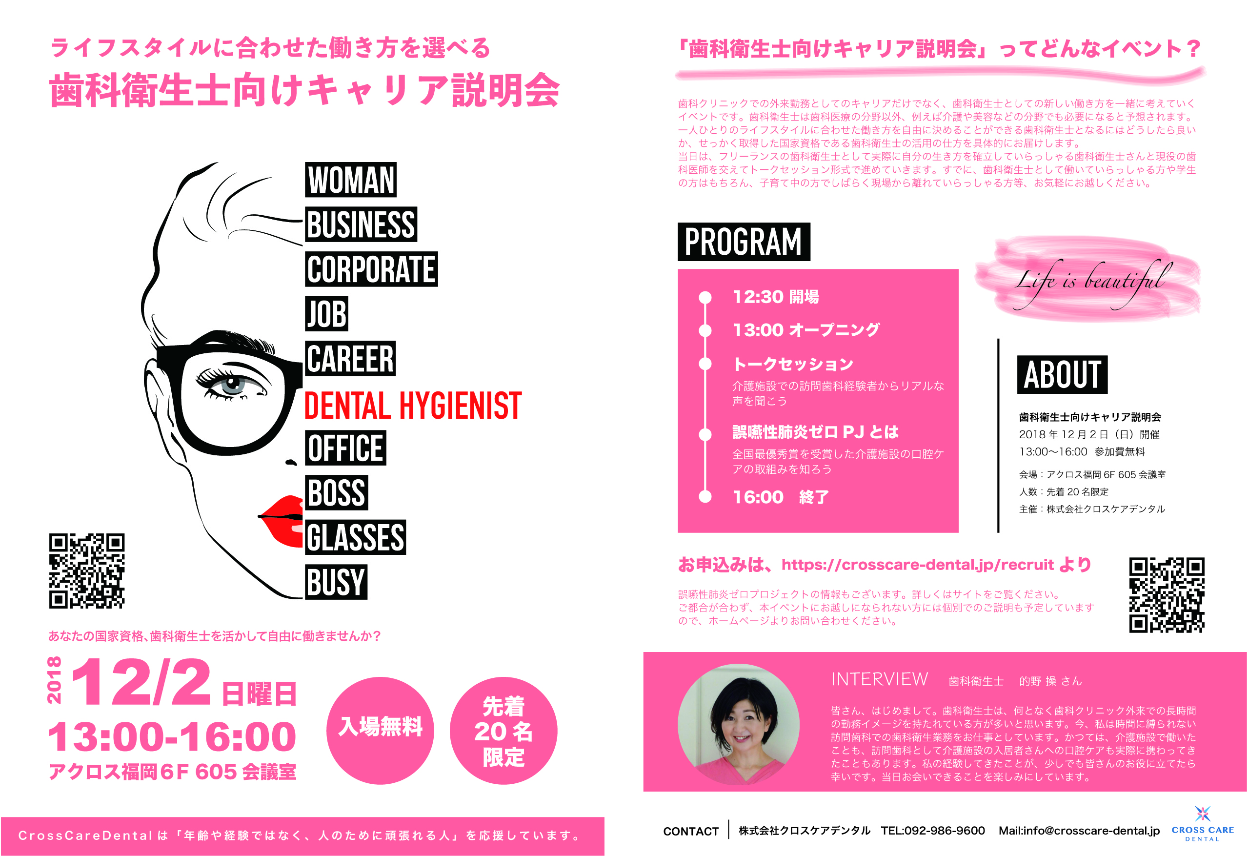 ・内容:フリーランス歯科衛生士を迎えたトークセッション、自由ディスカッション等